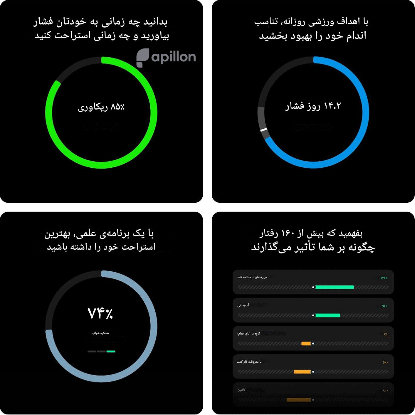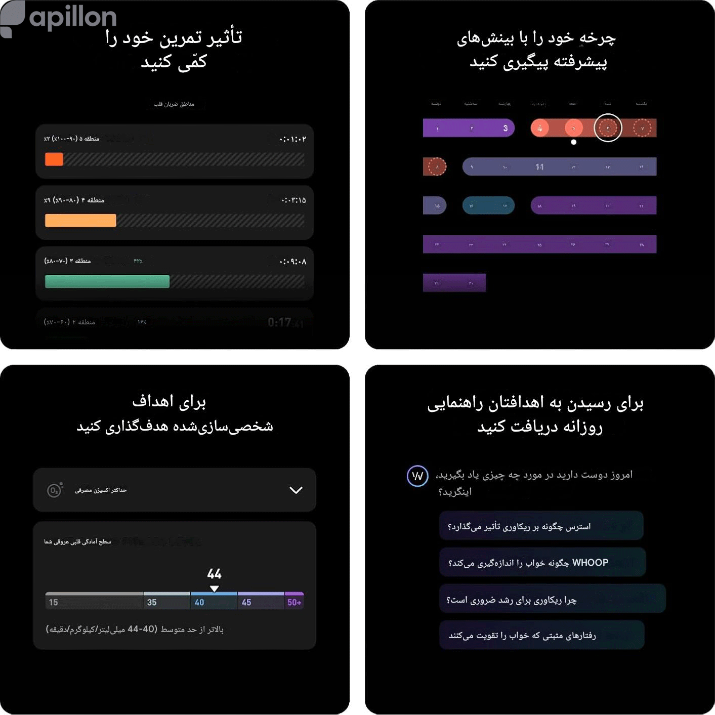 | اپلیکیشن | WHOOP (سازگار با iOS و Android) |