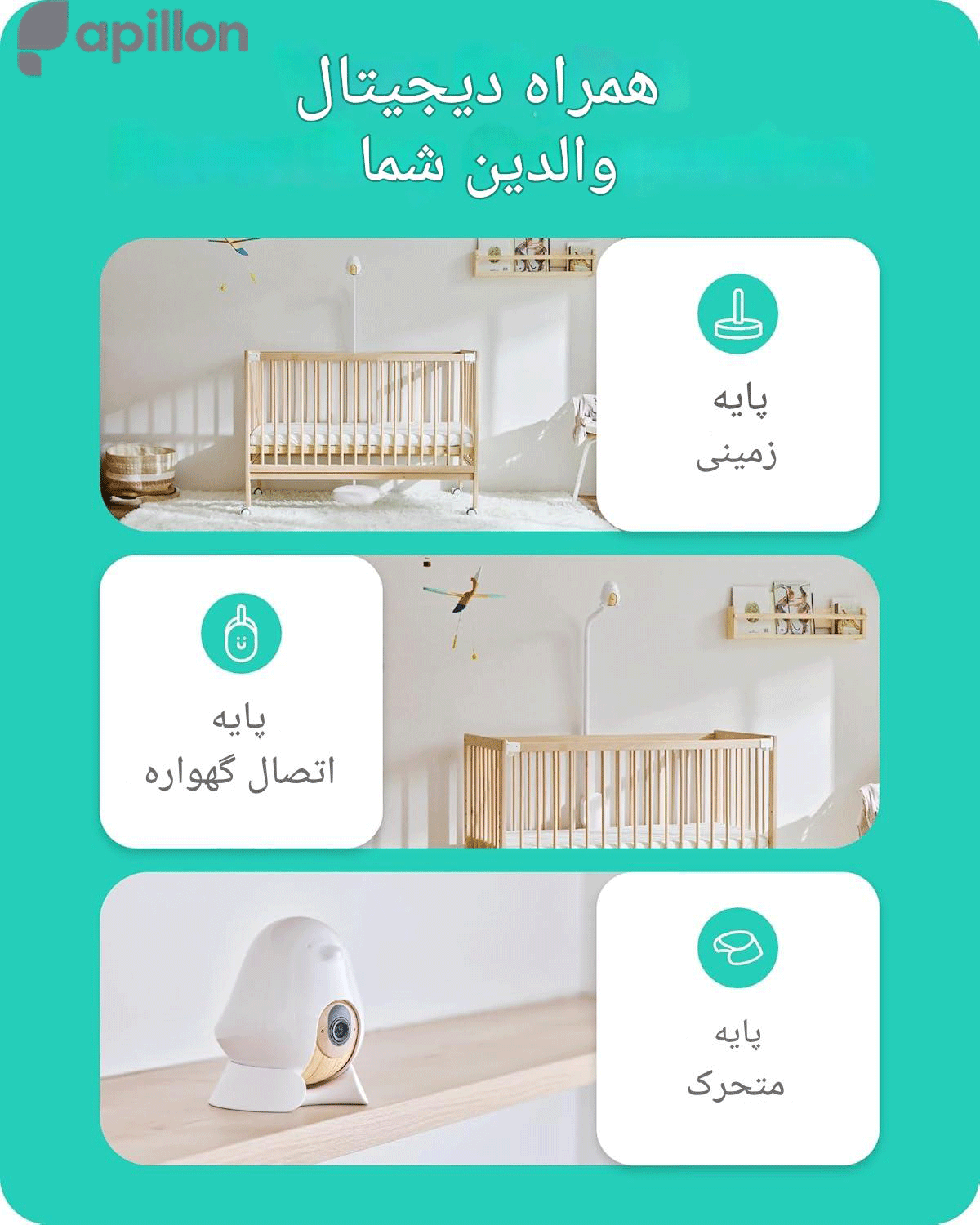 • ارائه 3 پایه مختلف: پایه زمینی یا کنار تخت برای نوزادان، پایه مخصوص تخت یا گهواره، و پایه متحرک برای کودکان بزرگ‌تر.
