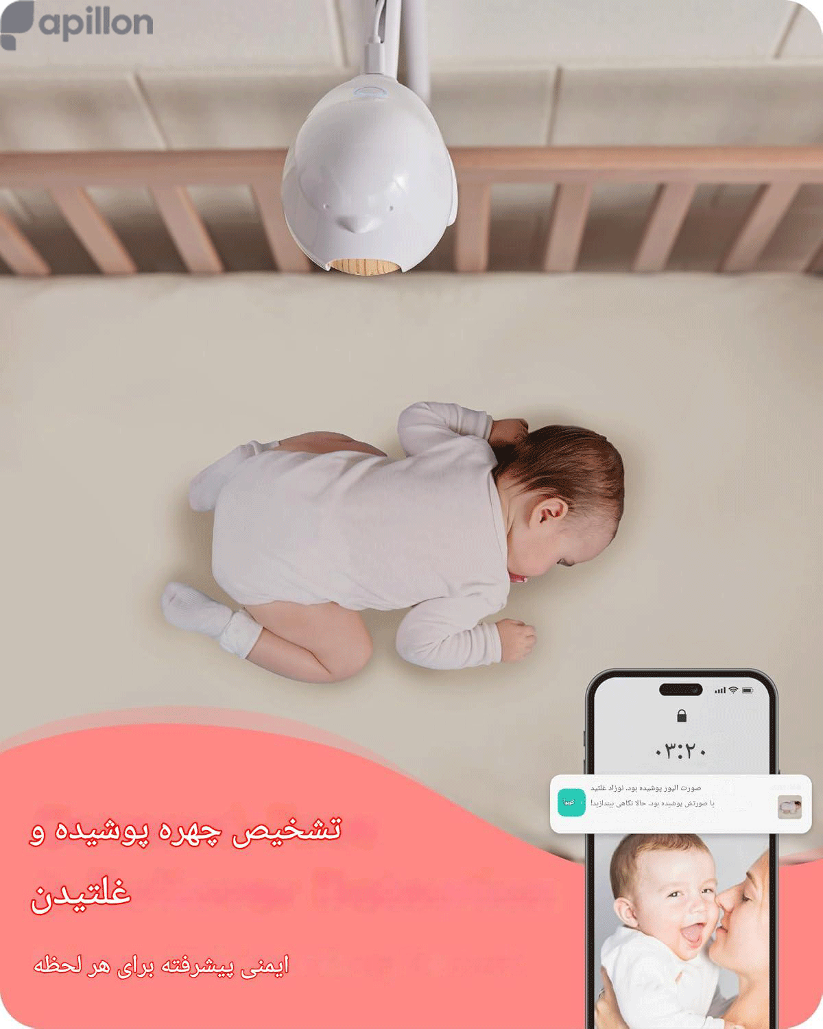 • قابلیت شناسایی و هشدار در صورت پوشیده شدن دهان و بینی نوزاد با پتو یا بالش.