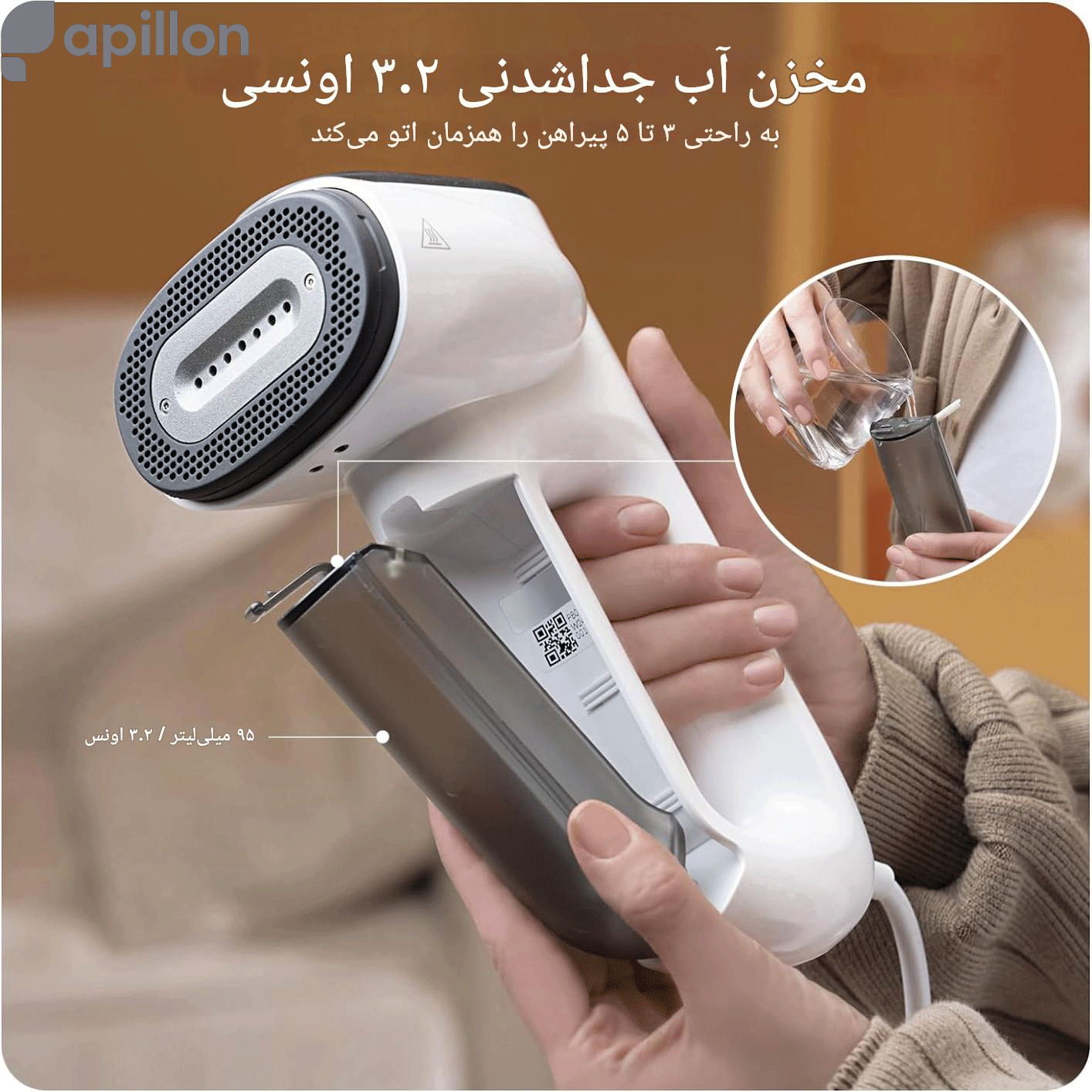 ۲ مخزن آب جداشدنی – کافی برای ۳ تا ۵ پیراهن